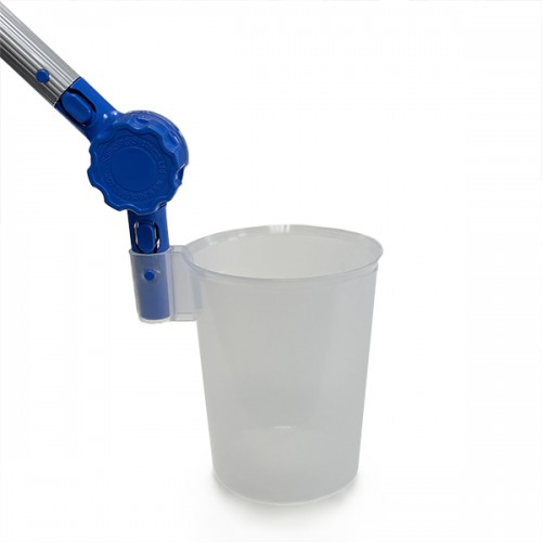 The angled beakers can have the angle changed to whatever is required. The different sizes can be put on the telescopic rods by our new quick connect system. Within 3 seconds the beaker can be changed for another size. These are perfect for use with our telescopic liquid sampling range.